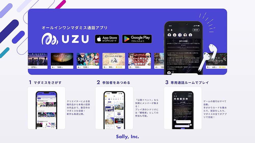 朝日放送グループホールディングス株式会社(本社:大阪市、代表取締役社長:沖中 進)のコーポレートベンチャーキャピタル「ABCドリームベンチャーズ株式会社」(代表取締役社長:石崎 豪朗)は、運用するベンチャー投資ファンド「ABC ドリームファンド 2号投資事業有限責任組合」を通じて、マーダーミステリーに特化したゲームの制作・投稿プラットフォーム「ウズ」を運営する株式会社Sally (本社:東京都渋谷区、代表取締役:平石英太郎、以下Sally)に出資しました。